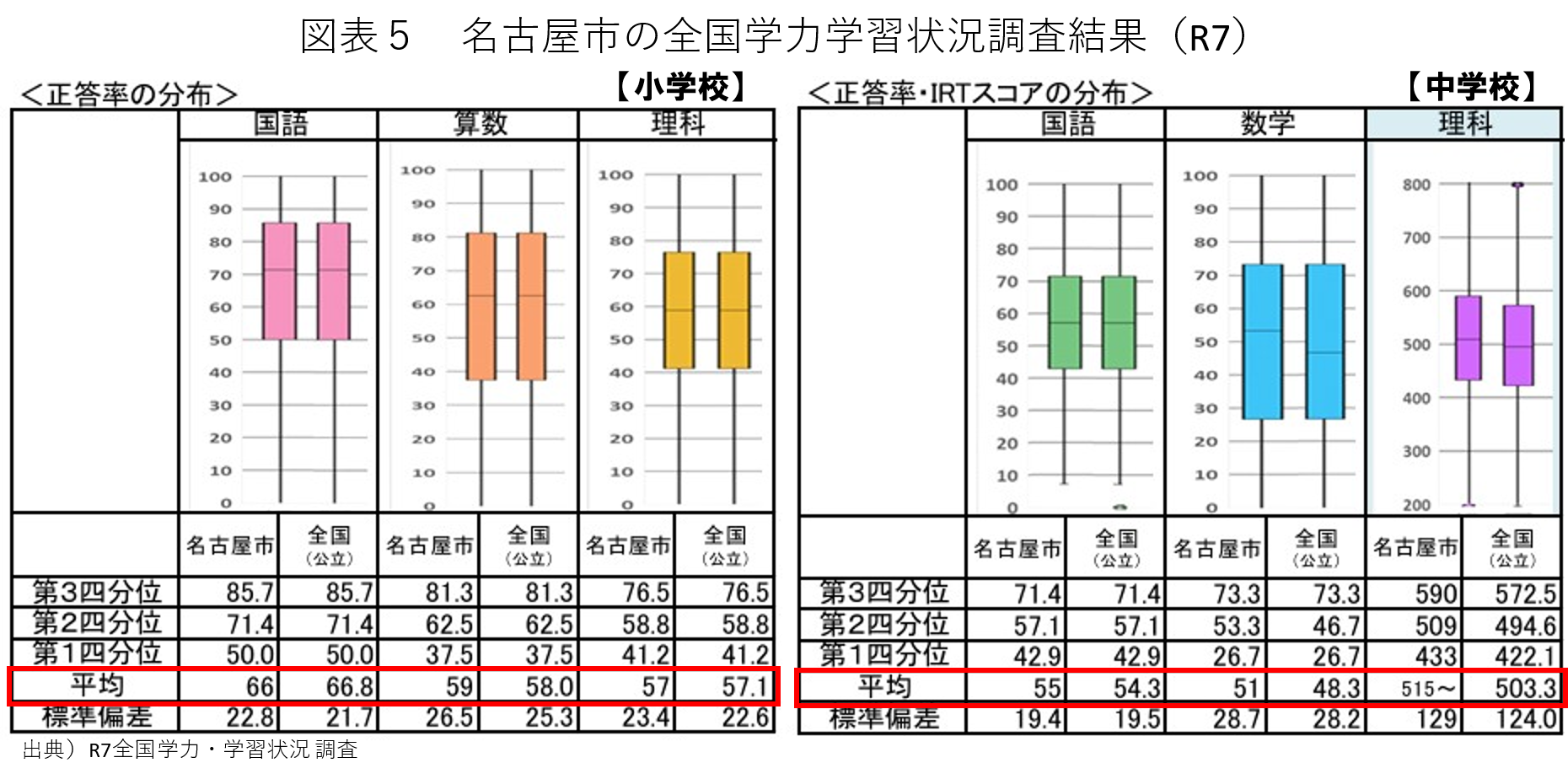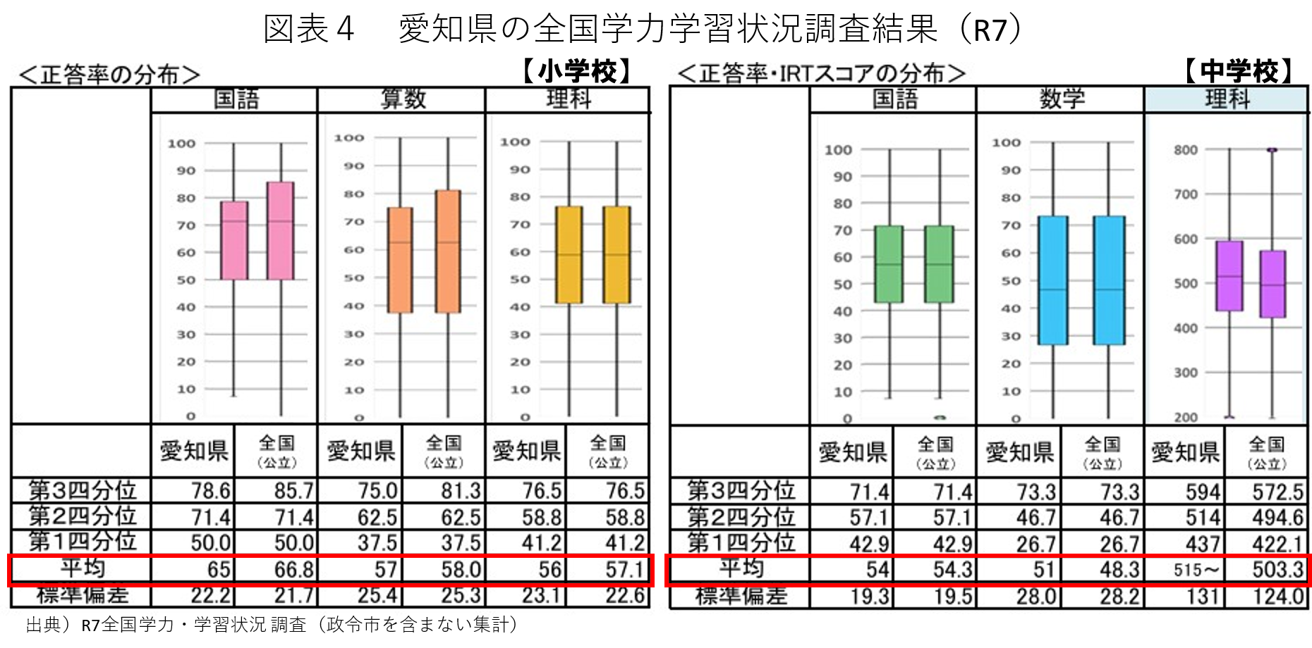 2.R7全国学力・学習状況調査結果概要 -愛知県では悪化、名古屋市は良化したが…-