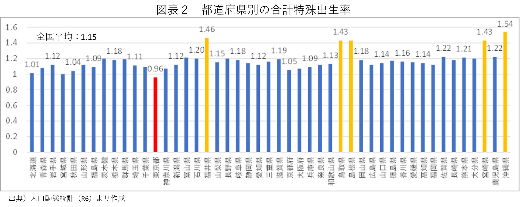 2.地域別合計特殊出生率が示唆する国土改革の必要性 -東京の出生率が際立って低い-