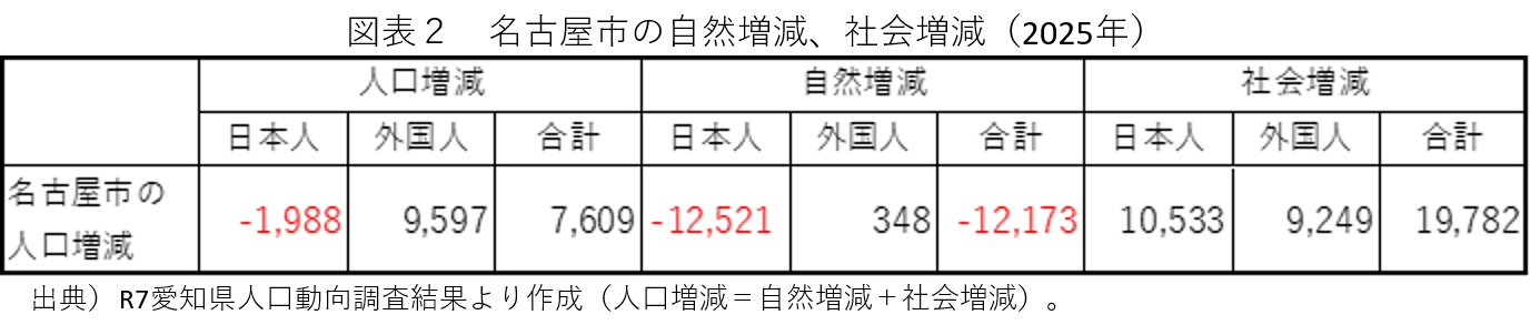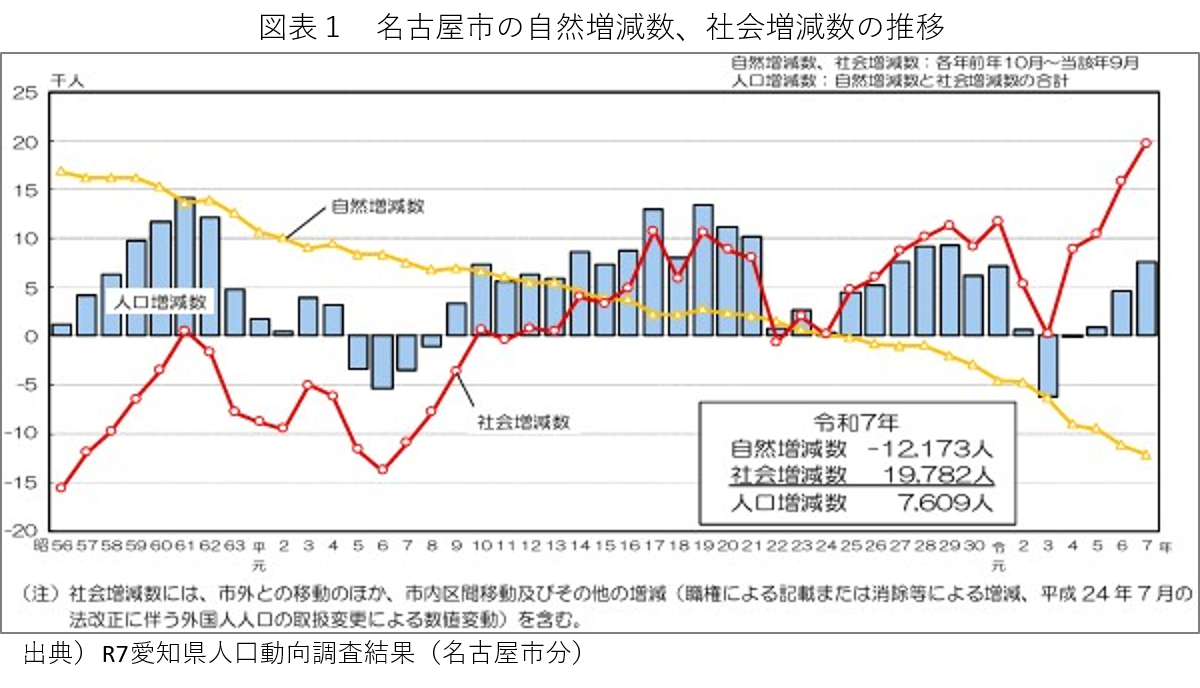 1.コロナ禍を挟んで増加を維持する名古屋市の人口  -自然減拡大を社会増が補う構造-
